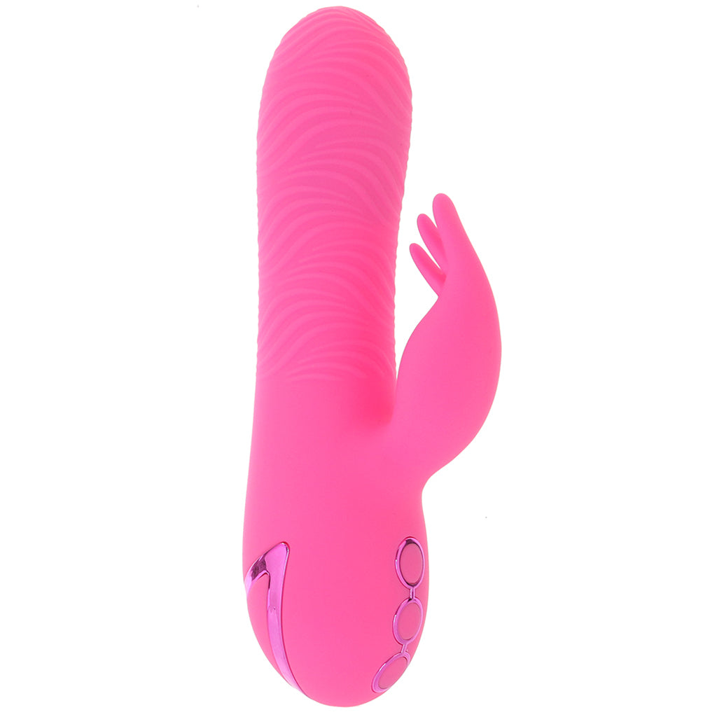 Super swollen at its textured tip and featuring three modes of bead rotation in the shaft, the Sweetie will make some seriously sexy waves when it comes to G-spot, P-spot, and general inner erogenous zone stimulation. Outside, the up-curled stimulator features ten modes of steady, throbbing, and pulsating vibration that'll captivate clit plus any outer sweet spot that happens to be in close contact. Enjoy vibration and rotation together or separately - a simple three-button interface controls everything.